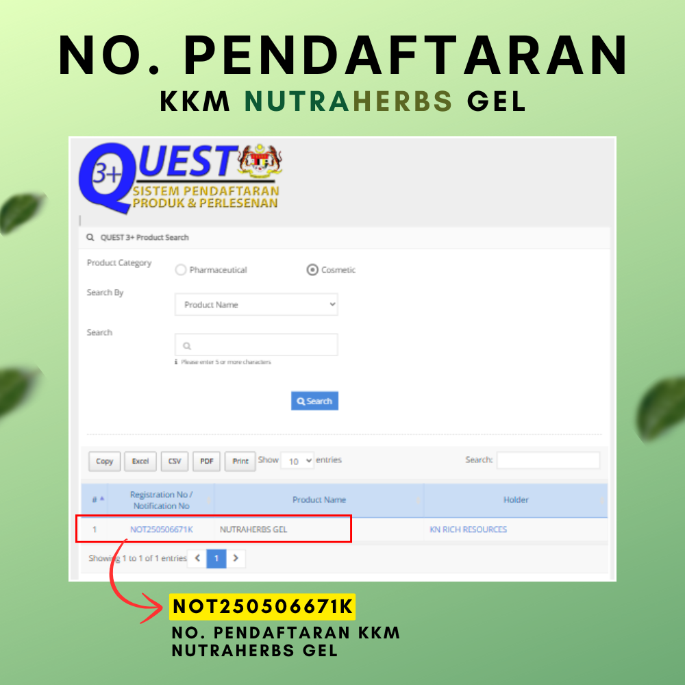 Gel Nutraherbs bertindak terus pada kawasan sasaran untuk memberikan kelegaan pantas.